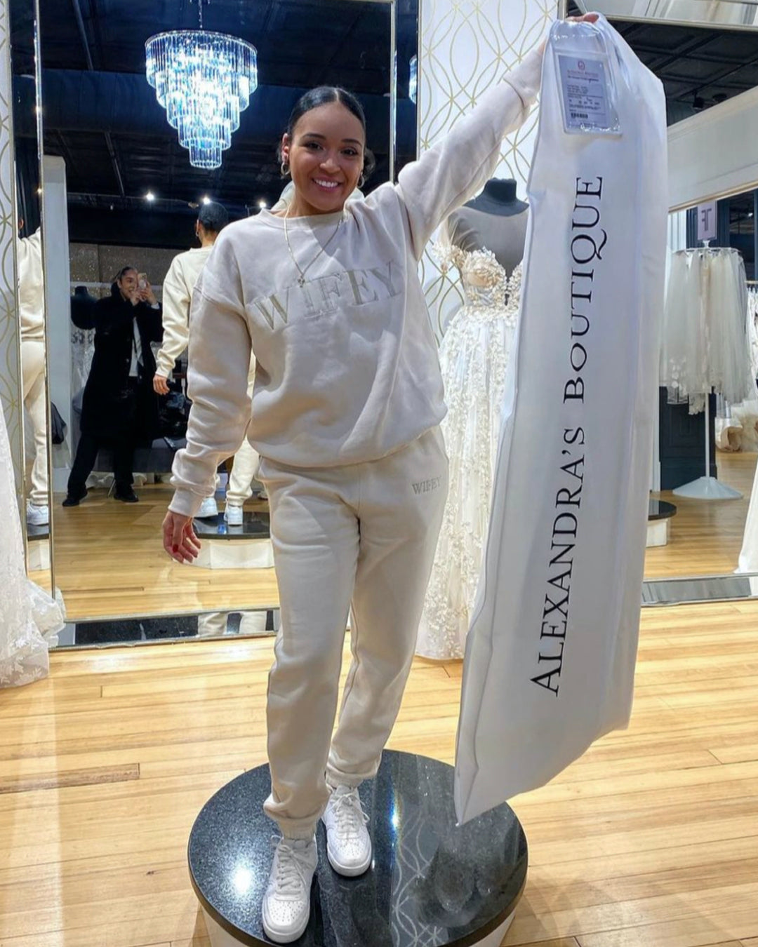• Embroidery champagne detail 'WIFEY' on left pocket