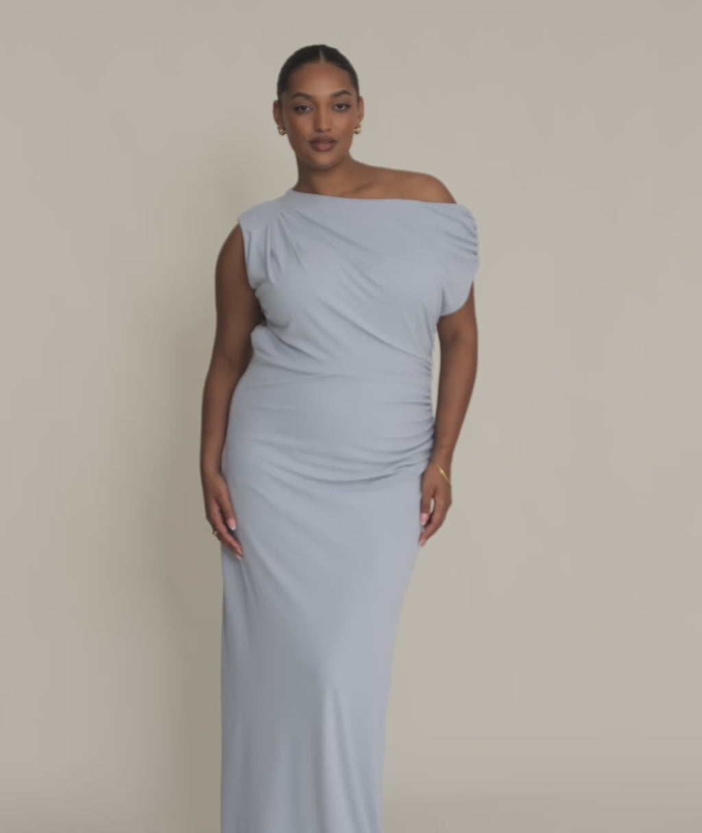 LORNA in Pale Blue is soft, romantic, and endlessly graceful. Designed in premium stretch sculpt fabric with a clean, modern neckline, it flatters from every angle. A dreamy hue in a gown made to last.