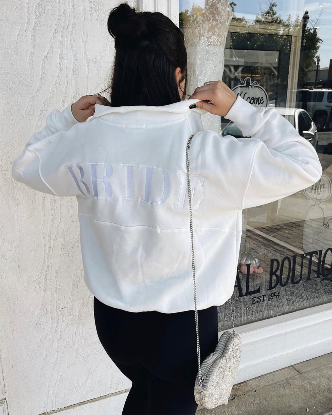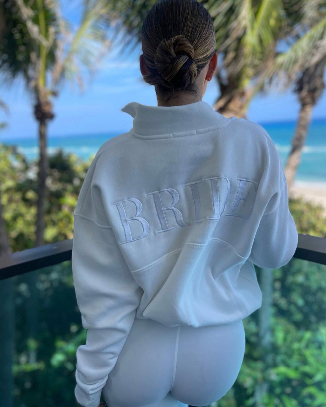 Perfect for your wedding morning, this premium bride quarter zip will make sure your hair & makeup won't smudge an inch. This sweat is here to save your glam.