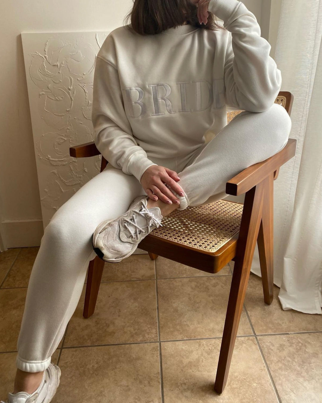 The sweatpants at the top of every bride's wishlist. So unbelievably comfy and soft, you'll want to wear wedding planning, to all those bridal appointments and of course travelling on your Bachelorette. Compliments and head turning guaranteed.