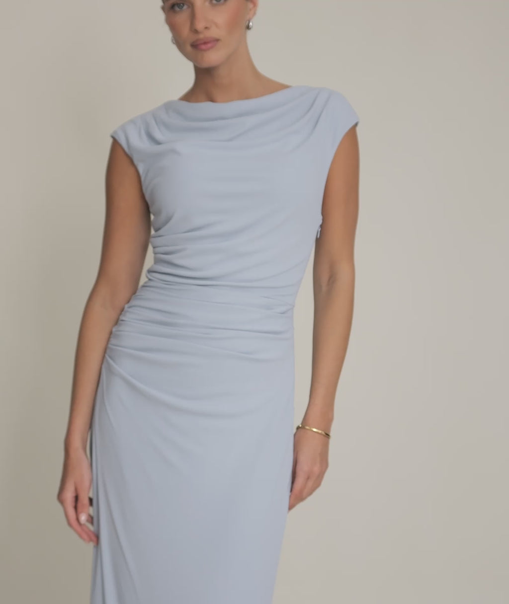 Soft yet striking, WILLA in Pale Blue is all about graceful draping. The fabric is heavy enough to sculpt yet light enough to breathe, giving a gown that moves beautifully. Available up to size 22, it’s a timeless choice for every bridesmaid. Totally bra-friendly.