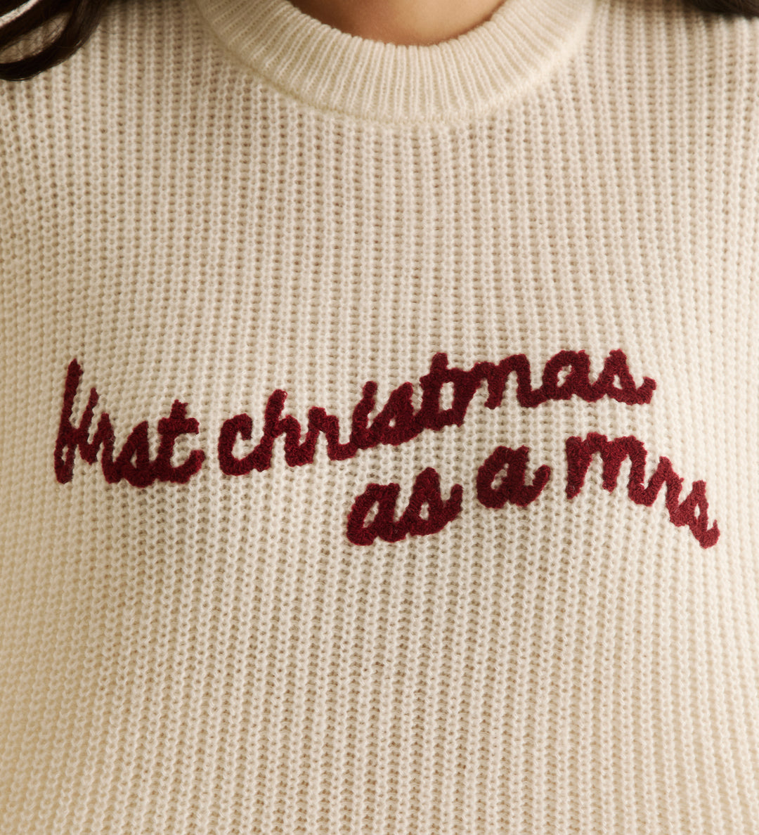 It's finally your turn to be a Mrs! 🤍 Our bestselling 'First Christmas As a Mrs' sweater is back for 2025. Crafted in a cosy knit and finished with festive chain-stitch embroidery, it’s the perfect way to make your first holiday season as a Mrs feel extra special.