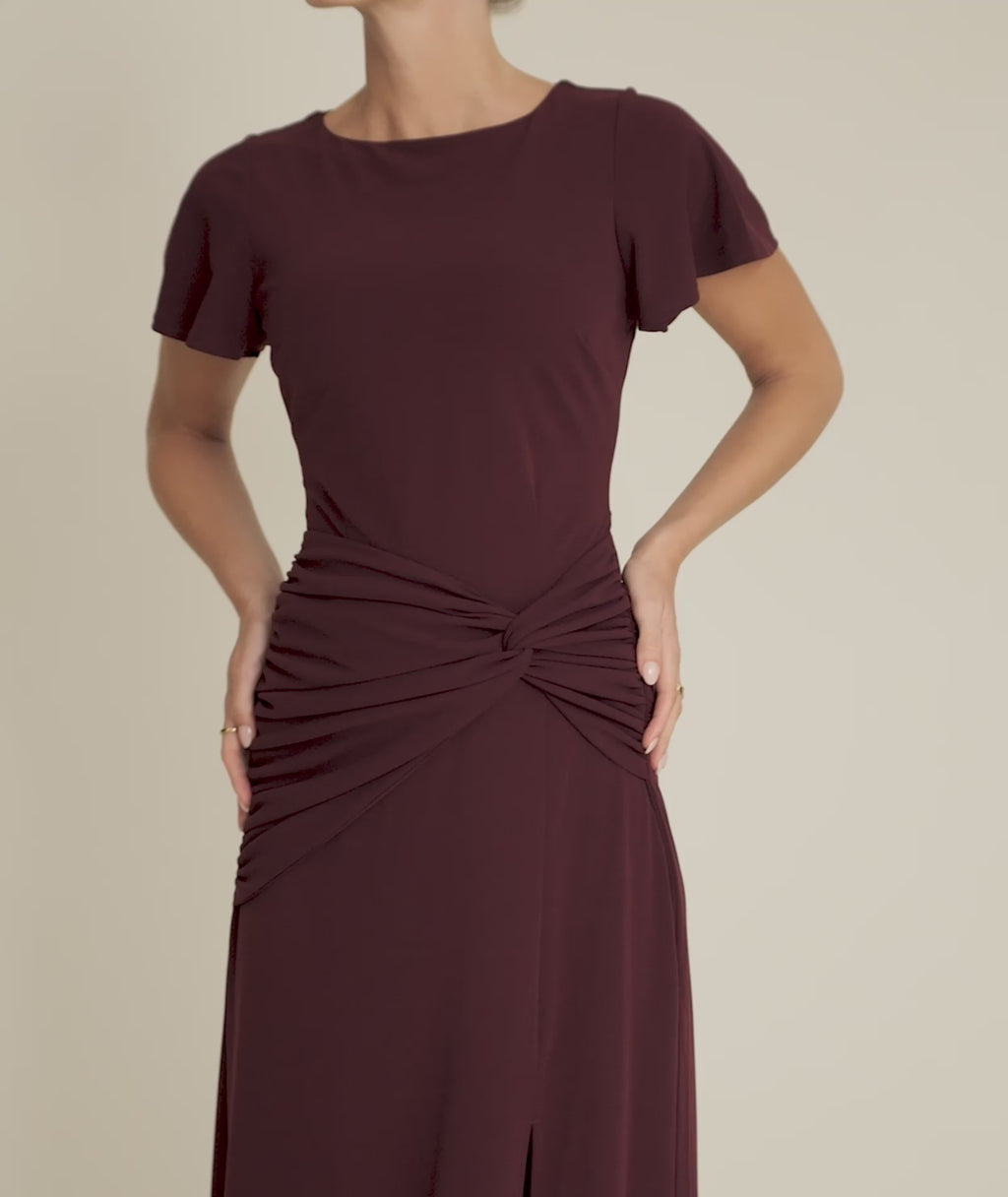 Flutter Sleeve Stretch Sculpt Bridesmaid Dress - Merlot