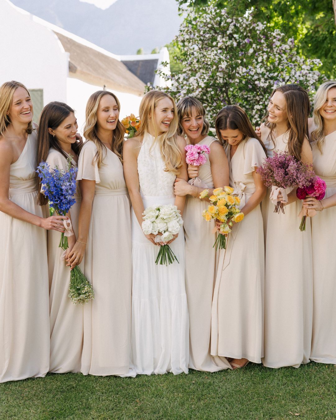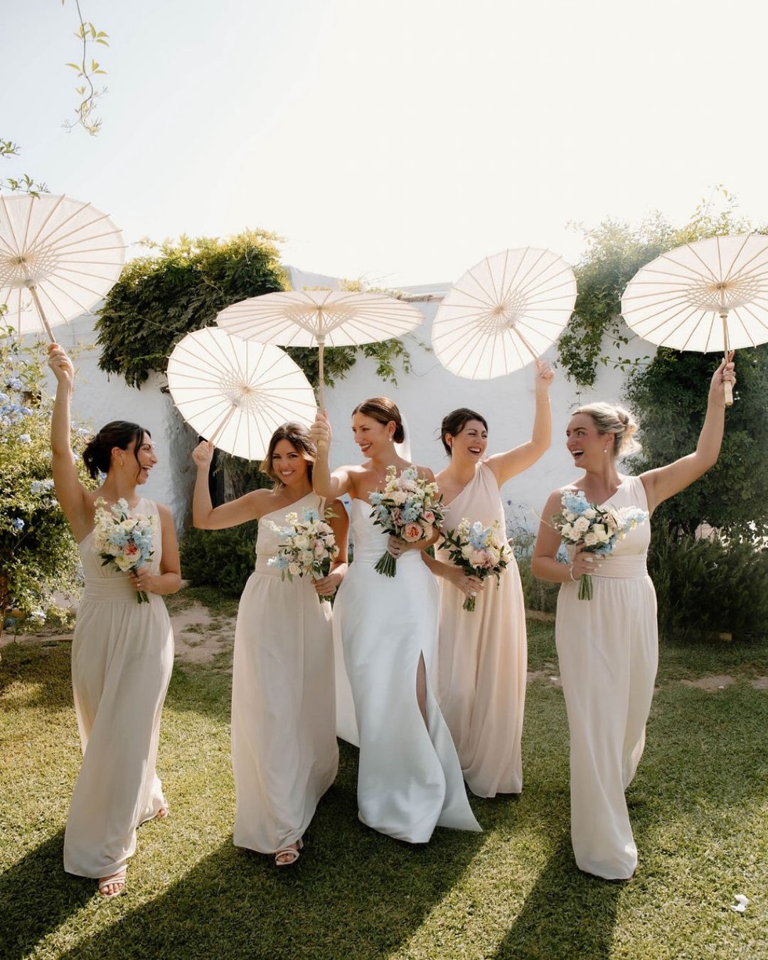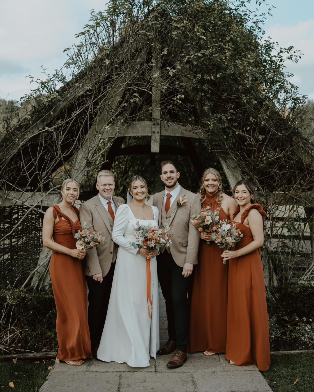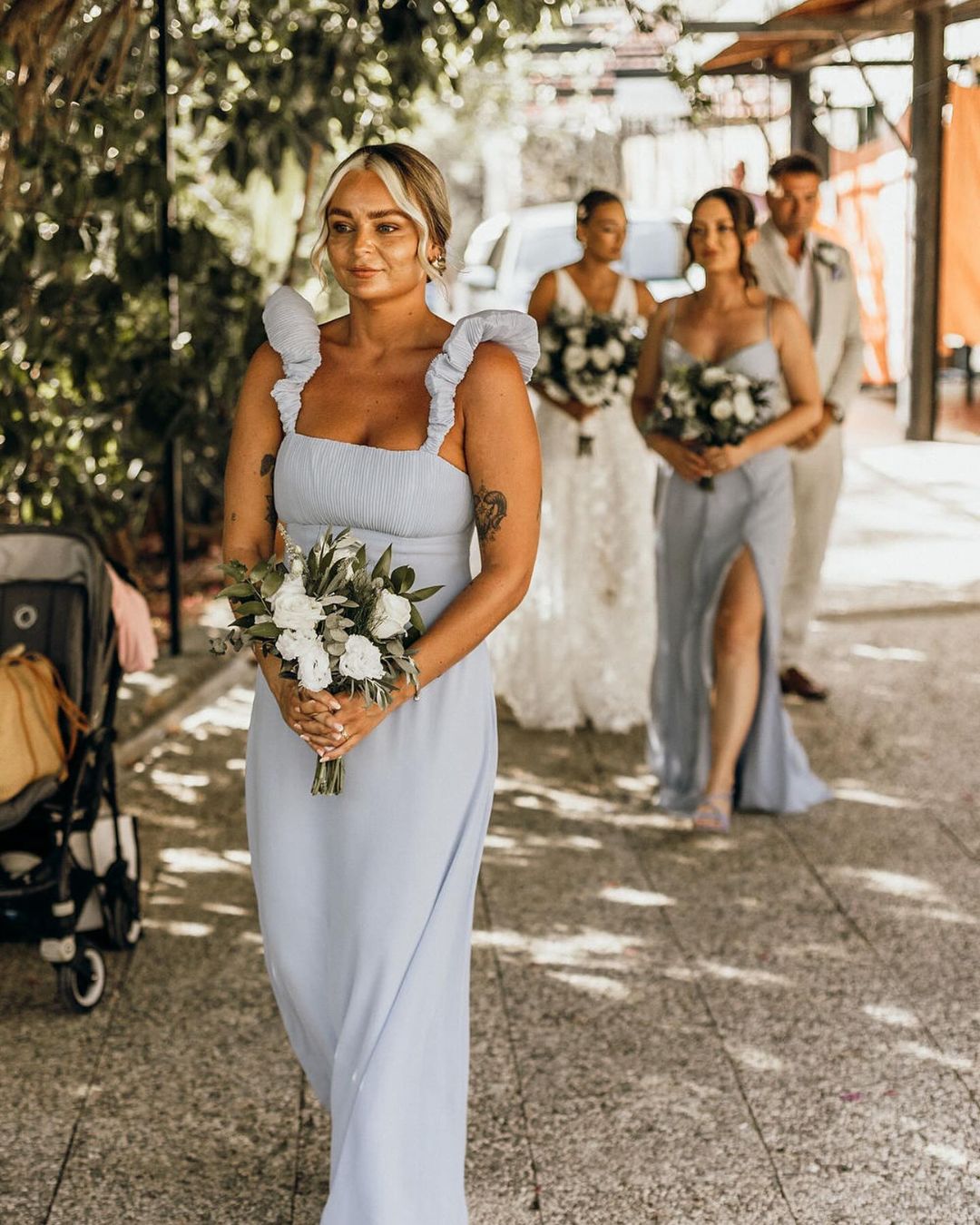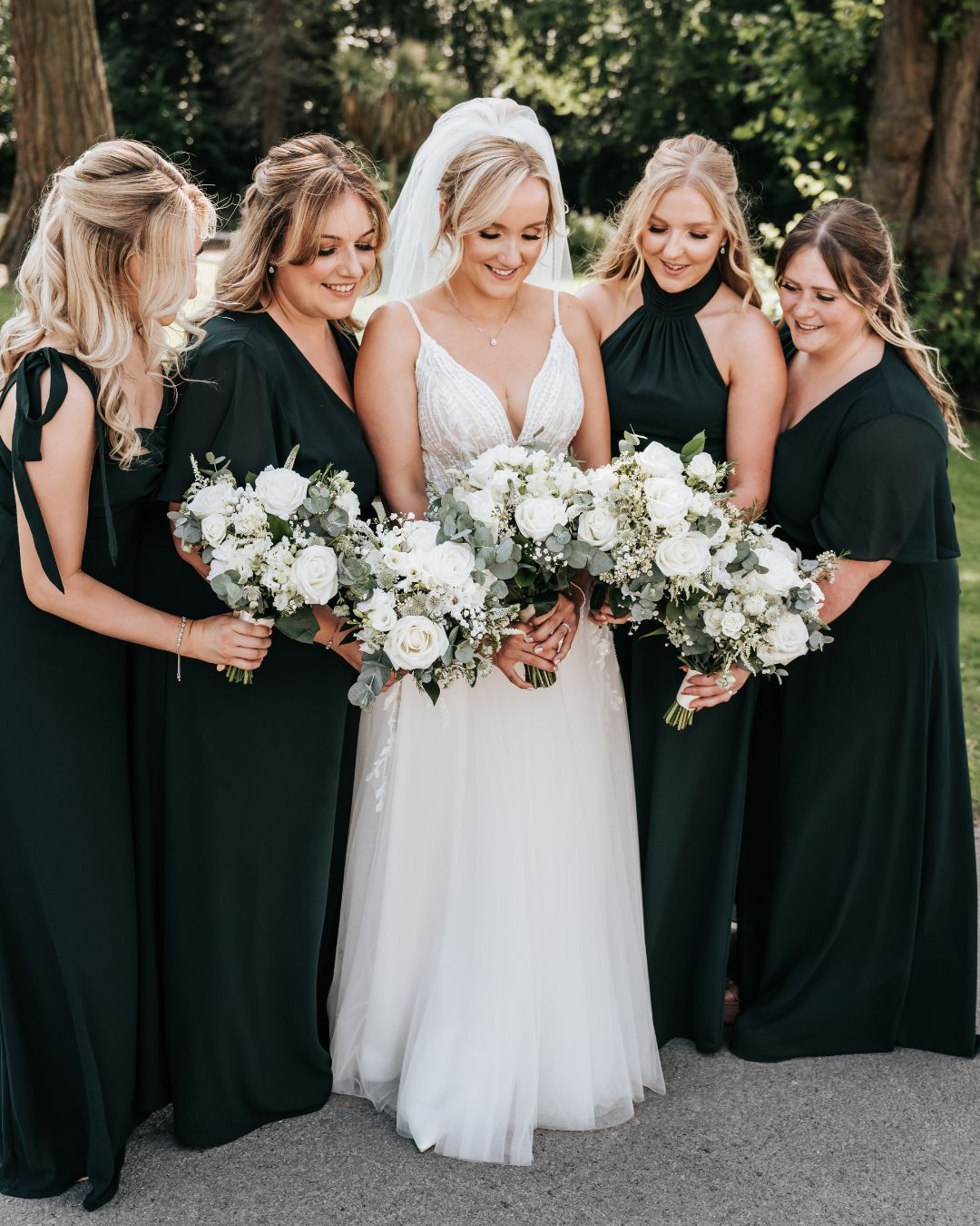 In a soft muted sage green that brings a sense of calm and understated elegance. A colour to compliment all skin tones and hair colours making it an excellent option for any bridal party.