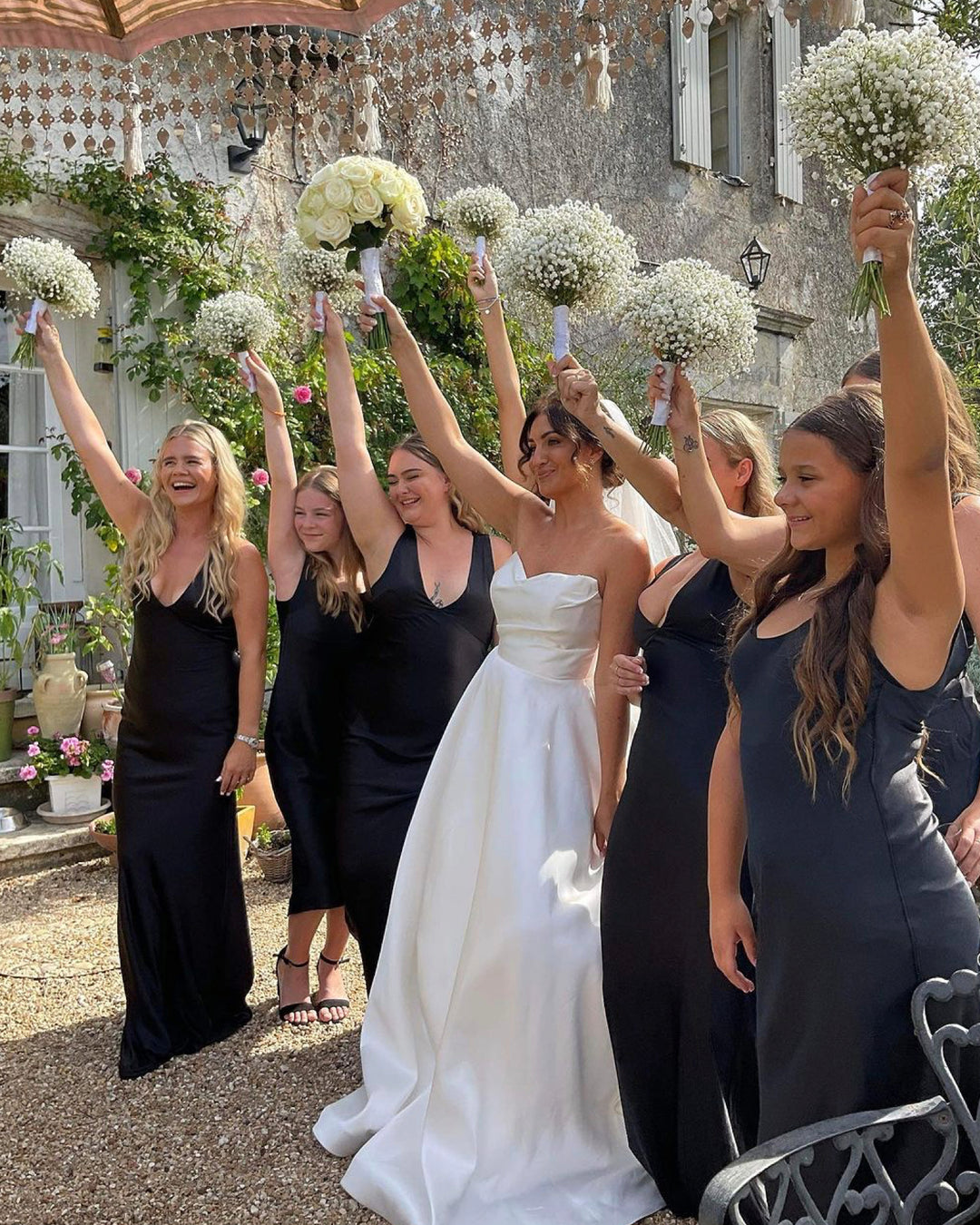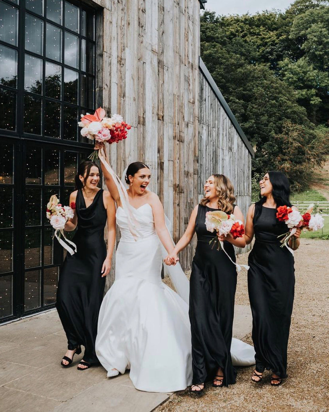 • Top tip: Keep each dress in their dust bags until the morning of wedding. Hang up the night before/morning of and give them a light steam to iron out all creases. Keep hung until ready to wear