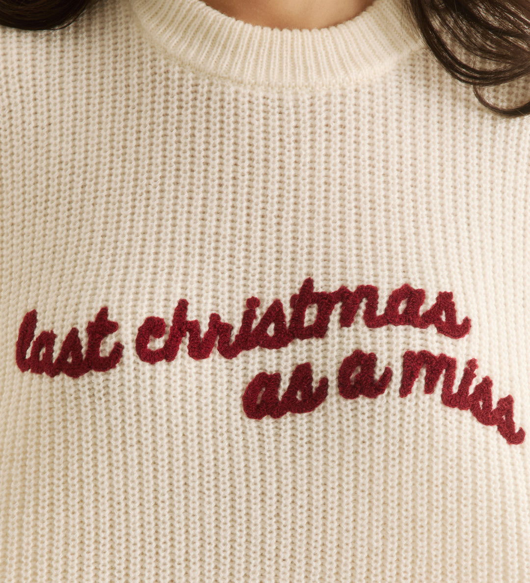 Last Christmas As A Miss Knitted Embroidered Sweater - Cream