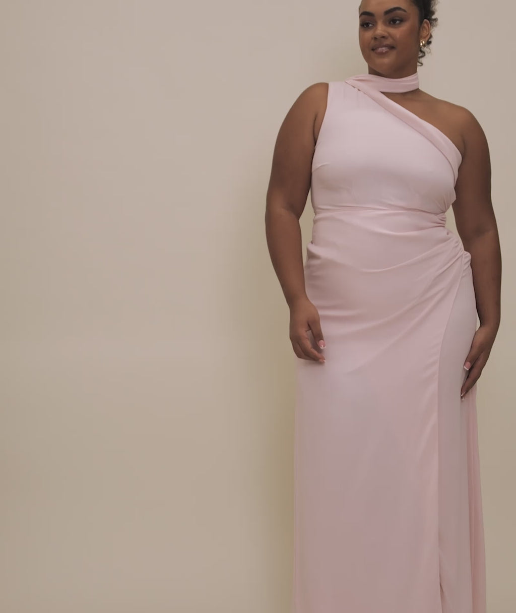 Meet Everlie, the dress that brings soft drama through its one-shoulder silhouette and wrap neck scarf feature, delicately attached at the shoulder for a sculptural, romantic finish. Designed to move with you, it feels light, fluid, and beautifully considered.