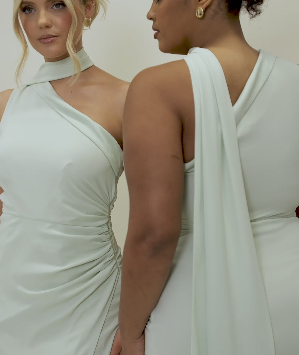 Meet Everlie, the dress that brings soft drama through its one-shoulder silhouette and wrap neck scarf feature, delicately attached at the shoulder for a sculptural, romantic finish. Designed to move with you, it feels light, fluid, and beautifully considered.