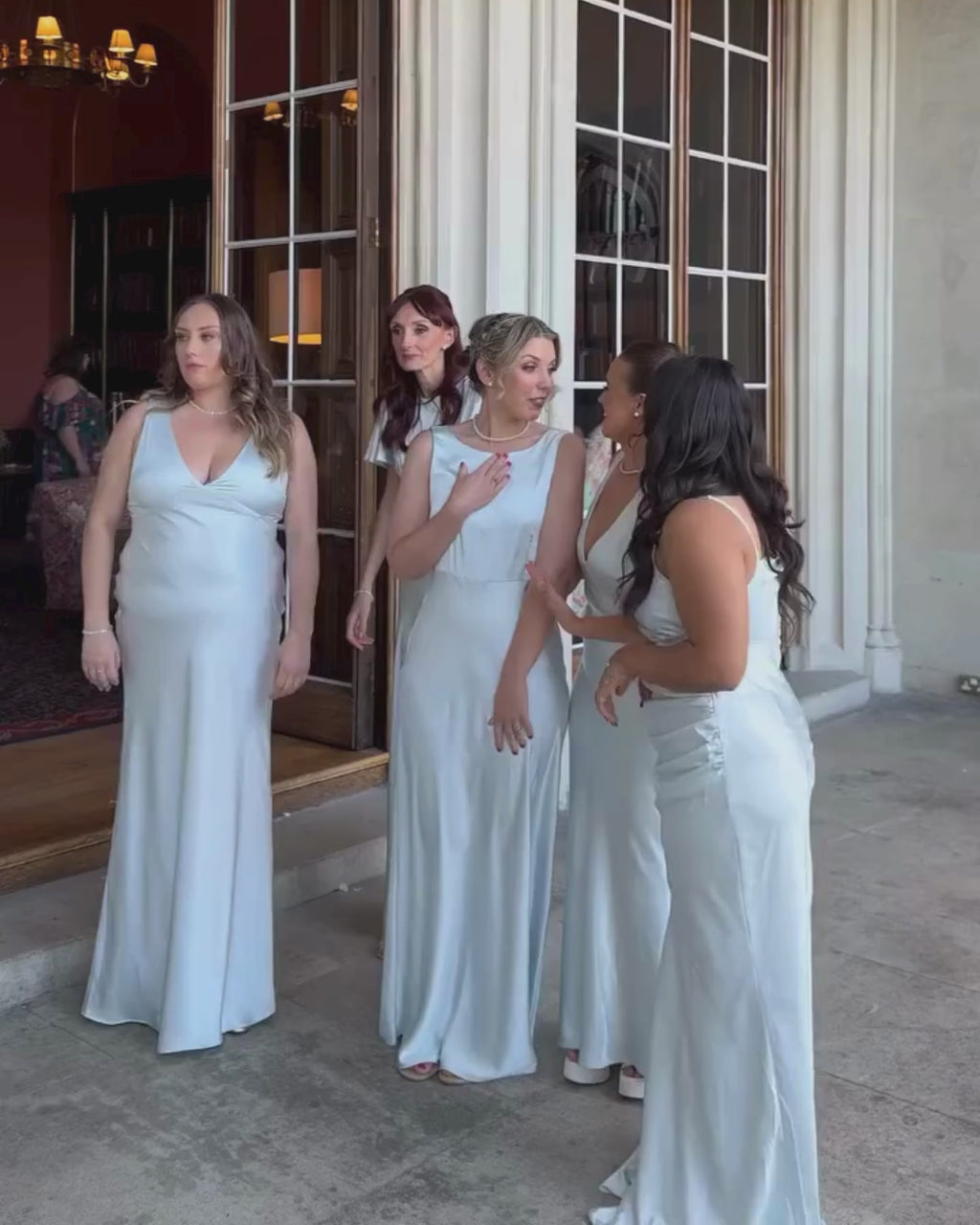 A true showstopper, this Ice Blue satin bridesmaid dress is designed for bridesmaids who want to feel as stunning as they look. The twist-back detail paired with a plunging neckline creates an effortlessly sexy, empowering silhouette, while the luxury hammered satin ensures an elegant, fluid drape. A dress so beautiful, they’ll want to wear it again and again.